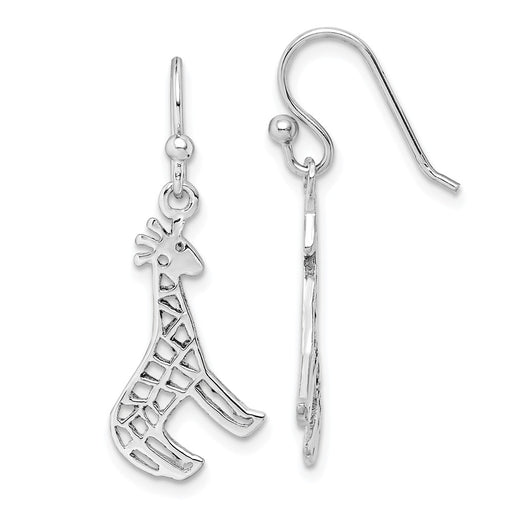 925 Sterling Silver Rhodium-plated Giraffe Dangle Earrings, 29.44mm x 11.24mm