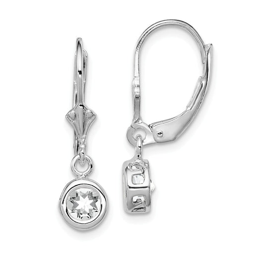 Stella Silver 925 Sterling Silver Rhodium 5mm Round Cubic Zirconia ( CZ ) Leverback Earrings, 26mm x 6mm