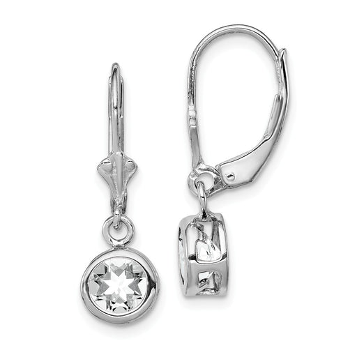 Stella Silver 925 Sterling Silver Rhodium 5mm Round Blue Topaz Leverback Earrings, 26mm x 6mm