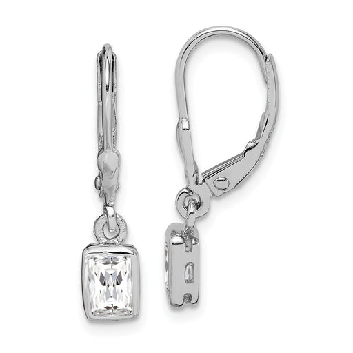 Stella Silver 925 Sterling Silver Rhodium 7x5 Emerald Cut Cubic Zirconia ( CZ ) Leverback Earrings, 26mm x 7mm