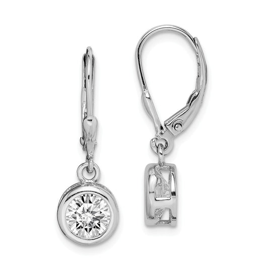 Stella Silver 925 Sterling Silver Rhodium 6mm Round Cubic Zirconia ( CZ ) Leverback Earrings, 26mm x 7mm