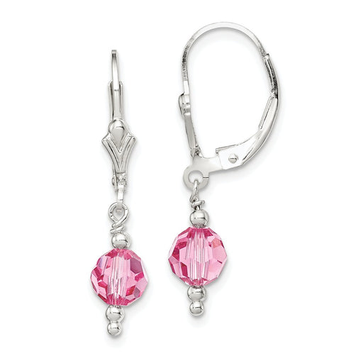 Stella Silver 925 Sterling Silver Rose Swarovski Elements Leverback Earrings, 33mm x 5mm