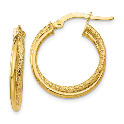 Million Charms 14k Yellow Gold 3x15mm Diamond-cut Hoop Earrings, 22.51mm x 15mm