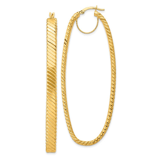 Million Charms 14k Yellow Gold 5x26mm Cascade Polished Oval Hoop Earrings, 67.13mm x 26mm