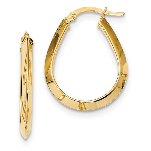 Million Charms 14k Yellow Gold Polished 2.75mm Knife Edge Teardrop Shape Hoop Earrings, 26.7mm x 21.7mm