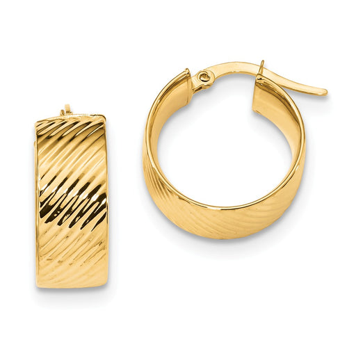 Million Charms 14k Yellow Gold Polished Textured Hoops, 22.51mm x 23.52mm