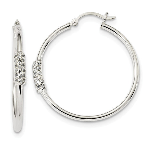 925 Sterling Silver with Cubic Zirconia ( CZ ) Hoop Earrings, 35mm x 35mm