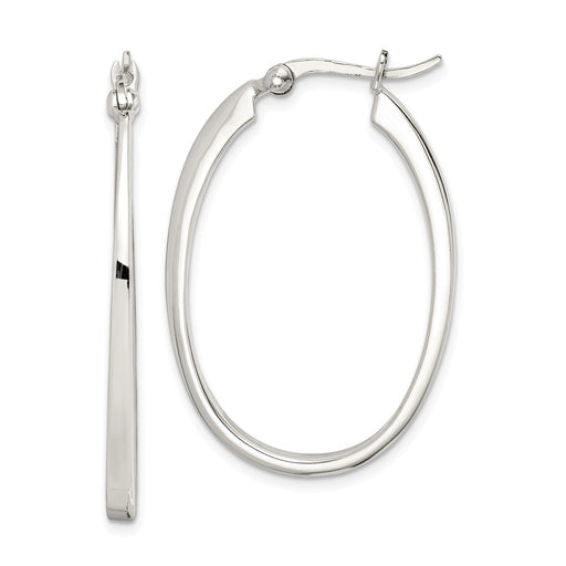 Stella Silver 925 Sterling Silver Flat Square Tube Oval Hoop Earrings, 38mm x 27mm