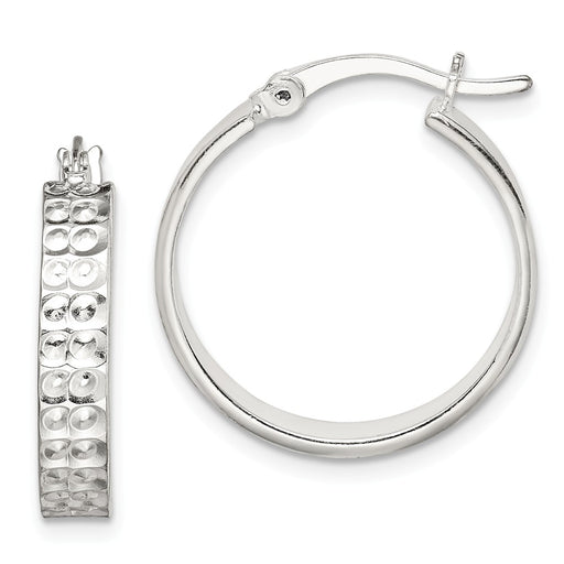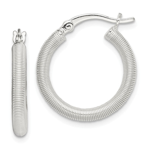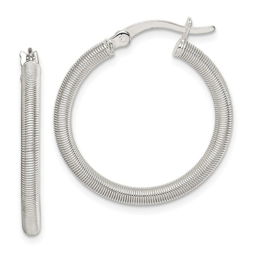 925 Sterling Silver Textured Polished Hoop Earrings, 3.2mm