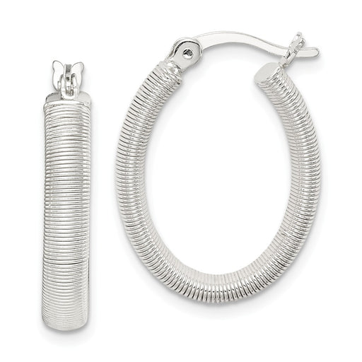 925 Sterling Silver Diamond-cut Oval Hoop Earrings, 20.6mm x 17.3mm
