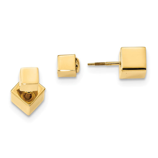 Million Charms 14k Yellow Gold 5mm/7mm Cube Front & Back Post Screwback Earrings, 7mm