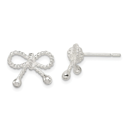 925 Sterling Silver Polished and Textured Bow Post Earrings, 10mm x 14mm