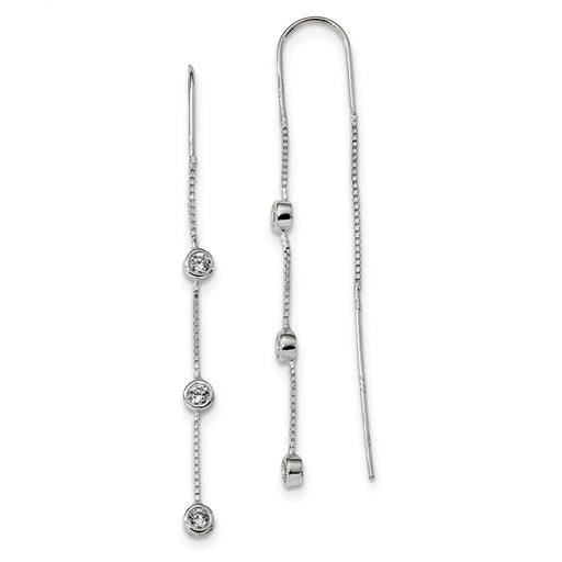 925 Sterling Silver Polished 3 Bezel Set Cubic Zirconia ( CZ )s Threader Earrings, 66.5mm x 4mm