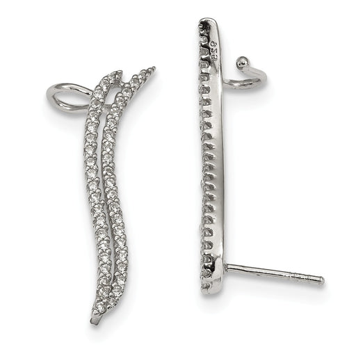925 Sterling Silver Rhodium-plated Cubic Zirconia ( CZ ) 1 Ear Climber & 1 Stud Earrings, 32mm x 5.04mm