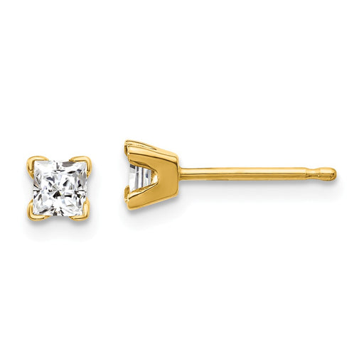 Million Charms 14k Yellow Gold AA Quality Complete Princess-cut Diamond Stud Earrings, 3mm x 3mm
