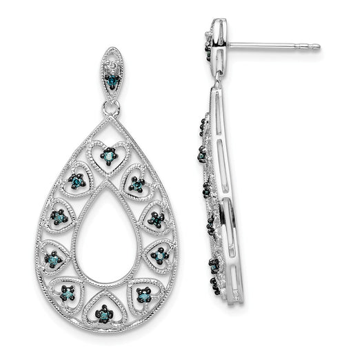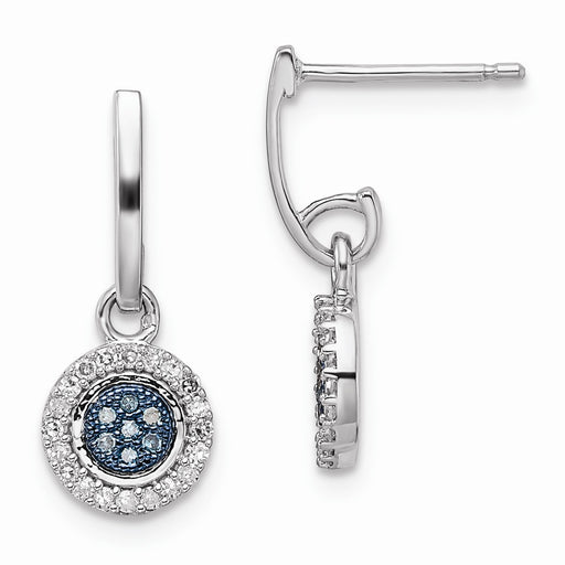 925 Sterling Silver Rhod Plated Dangle White & Blue Diamond Post Earrings, 34mm x 17mm