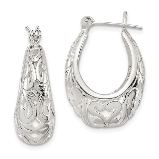 QGOriginal price $64.00Current price $41.50Model No. MCQGQE8371 - 925 Sterling Silver Oval Filigree Hoop Earrings, 24mm x 17mm Specifications: Material: Primary - Purity:925|Length of Item...