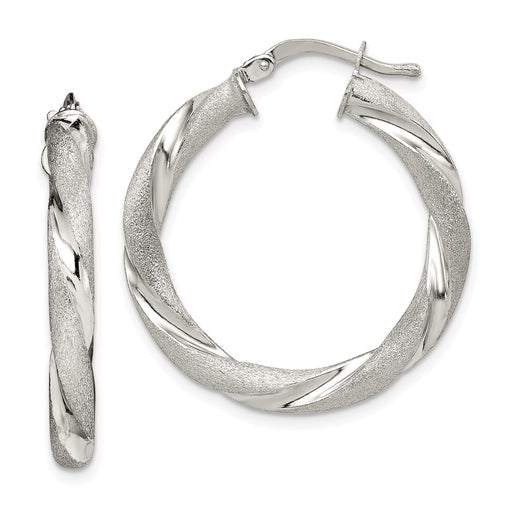 Stella Silver 925 Sterling Silver Satin and Polished Twisted Hoop Earrings, 28mm x 28mm