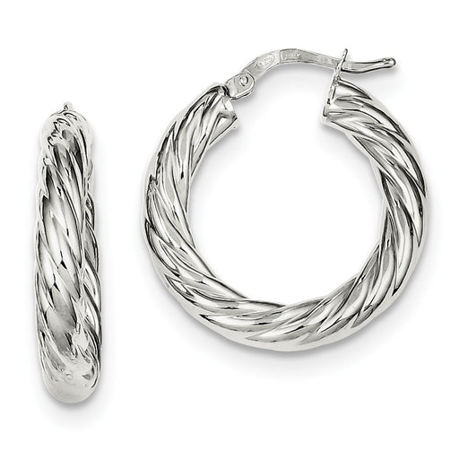 Stella Silver 925 Sterling Silver Rhodium-plated 2.7x25mm Twisted Hoop Earrings, 25mm x 25mm