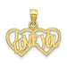 Million Charms 10K Yellow Gold Themed Polished & Textured I Love You Double Heart Pendant