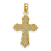 Million Charms 14K Yellow Gold Themed Scalloped Relgious Cross Charm - Jewelry, Pendants & Charms, Themed Charms, Religious, Crosses, Budded Crosses - Purity: 14K|Finish: Polished|Length of Item: 23.5 mm|Charm/Element Length: 18.5 mm|Feature: Solid|Manufacturing Process: Casted| Jewelry Type: Pendants & Charms|Texture: Textured|Bail Width: 4.5 mm| Color: Yellow|Bail Length: 5 mm - Made in: United States
