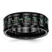 Men's Fashion Jewelry, Chisel Brand Ceramic Black with Green Carbon Fiber Inlay Beveled Edge Ring