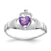 Model No. MCQGD1781 - 14k White Gold CZ February Birthstone Claddagh Heart Ring, Size: 7 - Specifications: Material: Primary - Purity: 14K|Stone Type 1: Cubic Zirconia (CZ)|Stone Color 1: Purple|Stone Quantity 1: 1|Plating: Rhodium|Band Width: 2 mm|Stone Weight 1: ct|Size (Minimum): 5|Size (Maximum): 9|Material: Primary: Gold|Sizeable: Yes|Stone Shape 1: Heart|Stone Size 1: 5x5 mm|Stone Treatment 1: Synthetic|Product Type: Jewelry|Jewelry Type: Rings|Sold By Unit: Each|Material: Primary - Color: White|Ring Type: Themed|Ring Top Length: 11 mm|Stone Creation Method 1: Synthetic|Stone Type (Other) 1: Synthetic Birthstone|Birthstone Month: (02) February|Birthstone Month 1: (02) February