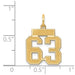 Million Charms 14K Yellow Gold Themed Small Satin Number 63 Charm - Jewelry, Pendants & Charms, Themed Charms, Sports Number Charms, Laser Etched Number Charms - Purity: 14K|Finish: Polished & Laser Design| Item Weight U/M: gm|Jewelry Type: Pendants & Charms| Color: Yellow|Relative Size: Small|Number: 63 - Made in: United States