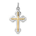 Million Charms 925 Sterling Silver Rhodium-Plated & 18K Gold-Plated Relgious Cross Charm Religious, Crosses, Budded Crosses Solid, Polished, Flat back, Sterling silver, Gold-plated Purity: 925|Length of Item: 24 mm|Material: Accents: 18K Gold|Plating: Rhodium|Material: Accent Color 1: Gold Tone|Feature: Solid|Manufacturing Process: Die Struck|Material: Sterling Silver|Width of Item: 14 mm|Jewelry Type: Pendants & Charms|Color: White|Plating Color: Silver Tone -Made in: United States