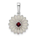 Million Charms 925 Sterling Silver Garnet, Enamel Flower Pendant , Gemstones Flowers & Gardening Purity: 925|Finish: Polished|Stone Type_1: Garnet|Stone Color_1: Red|Stone Quantity_1: 1|Length of Item: 22.5 mm|Material: Accents: Enamel|Material: Accent Color 1: White|Stone Setting_1: 4 Prong|Stone Weight_1: 0.15 ct|Charm/Element Length: 15.5 mm|Charm/Element Thickness: 3 mm|Charm/Element Width: 13.5 mm|Feature: Solid|Manufacturing Process: Casted|Material: Sterling Silver|Stone Shape_1: Round|Stone Size_1: 3 mm|Stone Treatment_1: Not Enhanced|Width of Item: 13.5 mm|Jewelry Type: Pendants & Charms|Profile Type: Textured Back|Bail Width: 2 mm|Color: White|Bail Length: 7 mm|Stone Creation Method_1: Natural -Made in: China