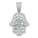 Million Charms 925 Sterling Silver Rhodium-Plated White & Blue (Cubic Zirconia) CZ Hamsa Eye Pendant