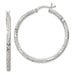 925 Sterling Silver Polished Diamond-cut Laser-cut Hinged Hoop Earrings, 41mm x 2.5mm