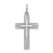 Million Charms 925 Sterling Silver Rhodium-Plated Laser Designed Relgious Cross Pendant Religious, Crosses, Latin Crosses Solid, Polished, Sterling silver, Laser Etched Purity: 925|Length of Item: 25 mm|Plating: Rhodium|Material: Sterling Silver|Width of Item: 12 mm|Jewelry Type: Pendants & Charms|Color: White|Plating Color: Silver Tone -Made in: United States