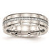 Finish: Polished & Brushed, Stone Type_1: Cubic Zirconia (CZ), Band Width: 6.5 mm, Material: Primary: Stainless Steel, Ring Fit: Standard, Sizeable: No, Stone Treatment_1: Synthetic, Product Type: Jewelry, Jewelry Type: Rings, Sold By Unit: Each, Gender: Unisex, Material: Primary - Color: White, Ring Type: Wedding Bands, Stone Creation Method_1: Synthetic