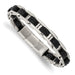 Chisel Brand Jewelry, Stainless Steel Brushed with Black PU Leather with .5in ext 7.75in Link Bracel