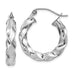 Model No. MCQGTF672 - Million Charms 14k White Gold Light Twisted Hoop Earrings, 21mm x 4mm Specifications: Material: Primary - Purity:14K|Length of Item:21 mm|Plating:Rhodium|Material: Primary:Gold|Width of Item:4 mm|Product Type:Jewelry|Jewelry Type:Earrings|Sold By Unit:Pair|Gender:Women's|Material: Primary - Color:White|Earring Closure:Wire & Clutch|Earring Type:Hoop Made In: INDONESIA