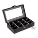 Occasion Gallery Black Color Black Leather 12 Cufflink Box with Glass Top, Snap Closure and Velour Lined. 8 L x 4.75 W x 2.5 H in.