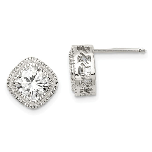 Stella Silver 925 Sterling Silver Cubic Zirconia ( CZ ) Square S Border Earrings, 11mm x 11mm