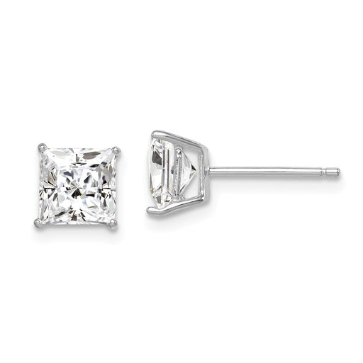 Stella Silver 925 Sterling Silver Rhodium-plated Cubic Zirconia ( CZ ) 8mm Square Post Earrings, 8mm x 8mm
