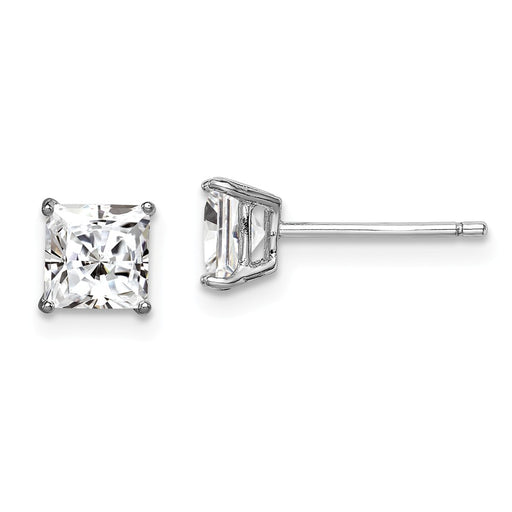 Stella Silver 925 Sterling Silver Rhodium-plated Cubic Zirconia ( CZ ) 6mm Square Post Earrings, 6mm x 6mm