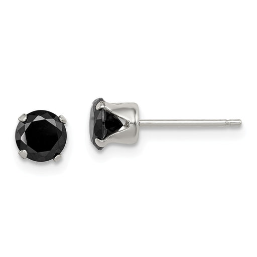 Stella Silver 925 Sterling Silver Black Cubic Zirconia ( CZ ) 5mm Round Post Earrings, 5mm x 5mm