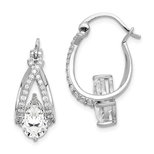 925 Sterling Silver Rhodium-plated Pear Cubic Zirconia ( CZ ) Hoop Earrings,