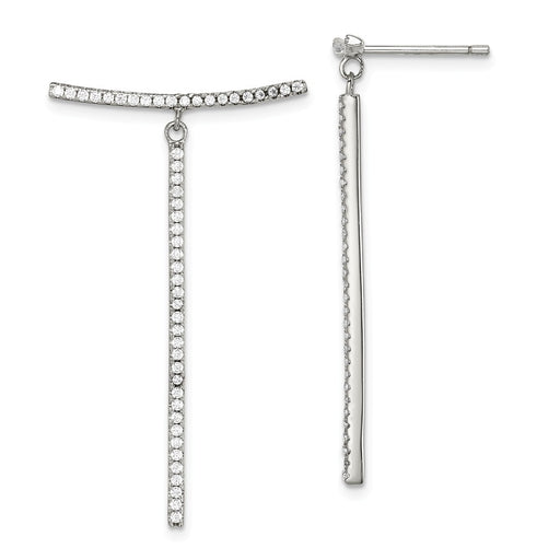 925 Sterling Silver White Cubic Zirconia ( CZ ) Dangle Bar Post Earrings,