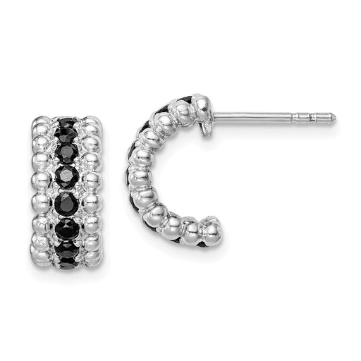 925 Sterling Silver Rhodium-plated Black Cubic Zirconia ( CZ ) C-Hoop Earrings,