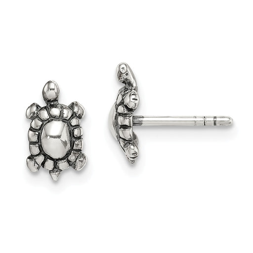 925 Sterling Silver Oxidized Turtle Post Earrings,