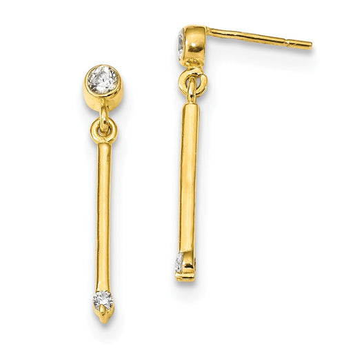 925 Sterling Silver Gold-tone Polished Bar with Cubic Zirconia ( CZ ) Post Dangle Earrings, 25.5mm x 4.12mm