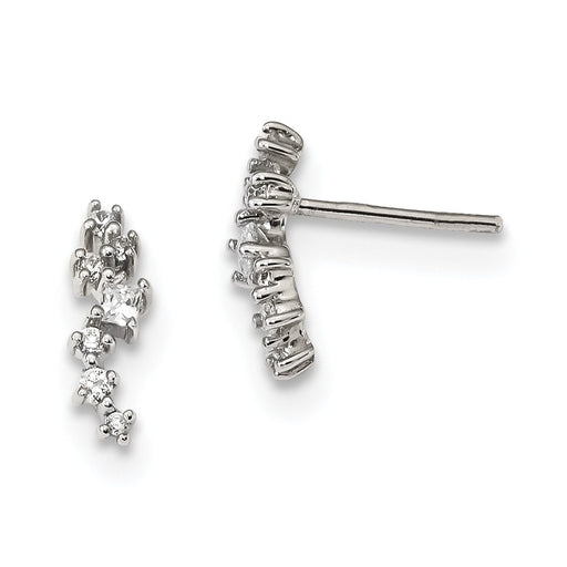 925 Sterling Silver Rhodium-plated Cubic Zirconia ( CZ ) 1 Ear Climber & 1 Stud Earrings, 32mm x 5.04mm