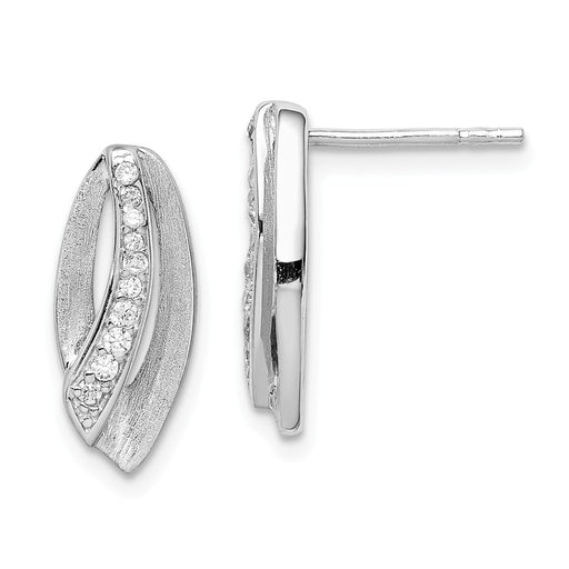 925 Sterling Silver Rhodium-plated Scratch Finish Cubic Zirconia ( CZ ) Post Earrings, 16.5mm x 7.08mm