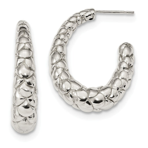 925 Sterling Silver Polished Textured J-Hoop Earrings, 28.8mm x 22.7mm