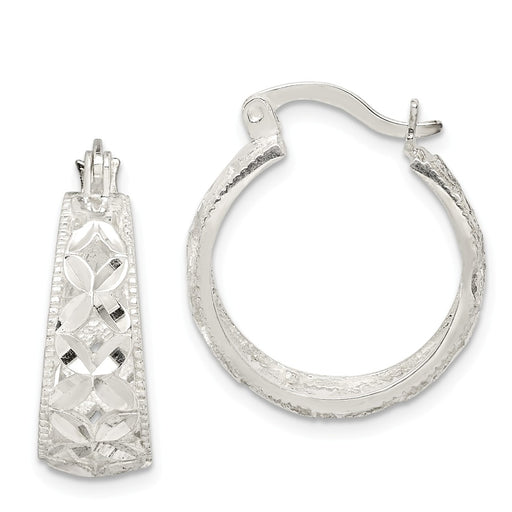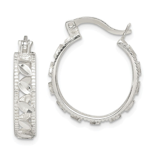925 Sterling Silver Diamond-cut Hoop Earrings, 25.36mm x 17.95mm